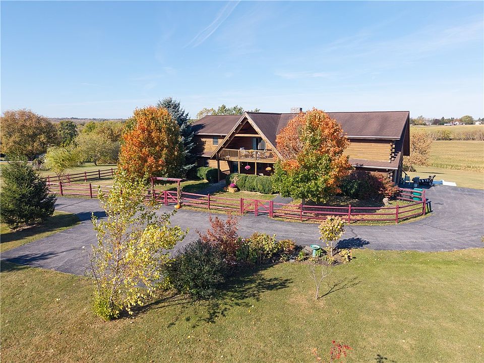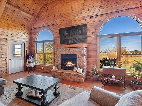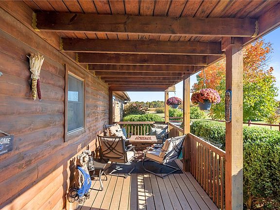 Beautiful 3,330 sq ft log home on just over 5 acres offering stunning sunsets and serene country living. Features 3 bedrooms, 3 full baths, and a spacious 2-story family room with a gas fireplace. The kitchen boasts stainless steel appliances and granite countertops. Enjoy outdoor living on three covered second-story porches. Large first floor laundry room / mud room right off the 2.5 car garage. The partially finished lower level includes a full bath and a huge office—perfect for working from home or a guest suite. Rustic charm meets modern comfort in this exceptional property!