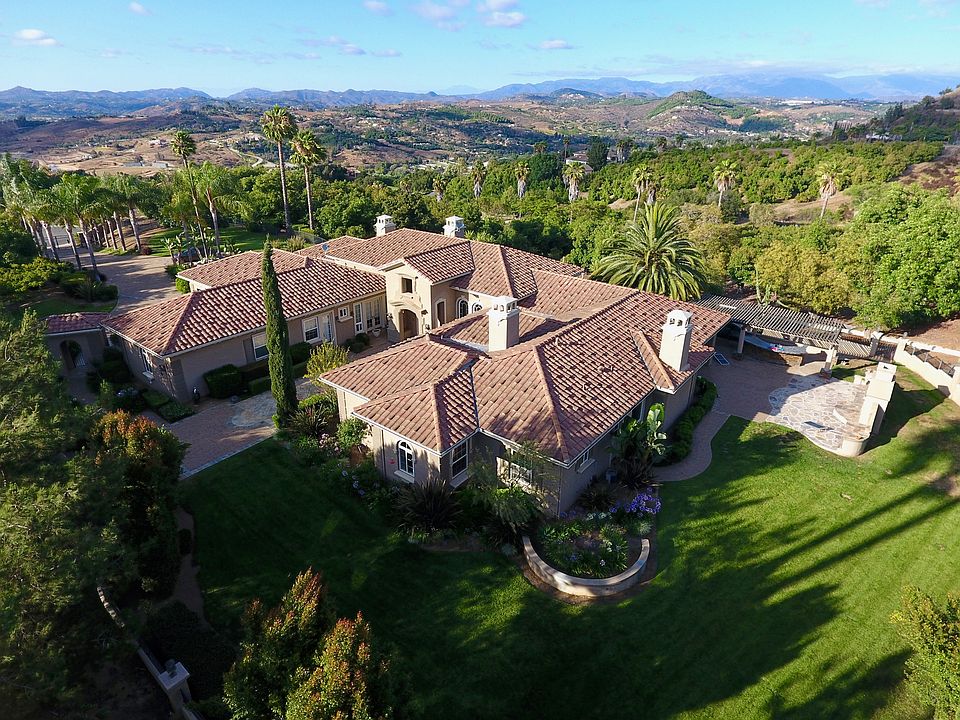 Truly exceptional, 1 story Gated Tuscan Villa! Tucked in the hills of Bonsall in the highly desirable Toscana neighborhood. The stunning views from the vanishing edge pool & spa will take your breath away. Enter the gates and travel up the circular driveway that is lined with palm trees and large stone fountain is the focal point. Elegant grand entrance with stone flooring and detailed design. Gourmet Chef's kitchen with stone flooring, sophisticated white cabinetry, slab granite.