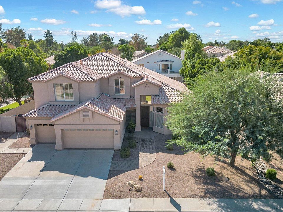 Welcome to your personal oasis where over 3,700 square feet of living space awaits you. Conveniently located in Chandler near freeways, shops, restaurants, Intel and a number of other industries, this home will check so many boxes. This 5 bedroom, with an office that can easily be a 6th bedroom, plus 3 full baths, has lots of room to roam. The office, a bedroom and a full bath are on the main floor with the other bedrooms upstairs. One of these rooms is a large 19x19 space. No carpet in this house - it's wood and tile flooring. The kitchen is outfitted with a plenty of cabinetry and a large island that invites culinary adventures and gatherings. Step outside to experience the lush backyard which was completely remodeled with travertine pavers, a new pool with waterfall that promises plenty of fun. It's the ideal setting for everything from BBQs to moonlit swims or simply enjoying a peaceful cup of morning coffee. But the beauty isn't just skin deep; this home comes with some serious peace of mind. Recent upgrades include a brand-new roof and a new upstairs HVAC system, ensuring comfort for years to come. Lastly, Ray Ranch Estates is known for its community activities - Halloween and Holiday parties to name a few. Don't miss this unique opportunity to make this Chandler dream home your reality.