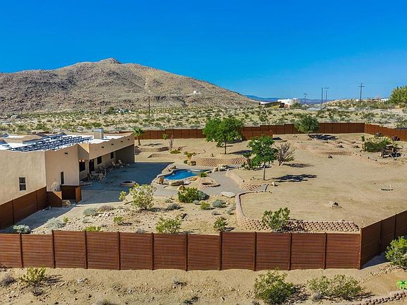 Discover your own sanctuary in the awe inspiring high desert, located minutes from Joshua Tree National Park. Wide open spaces, relentless attention to detail and sweeping desert views await you. Your secluded enclave includes 3 separate living areas: a recently completed modern main house, a 2-bedroom guest house (once an original homestead), a one-bedroom casita, swimming pool with a hot tub. As an added bonus, a spacious machine shop or artist garage, with ample room to store your Coach. From the romantic master suite with a custom closet, built for a movie star, to the master chef-approved stainless steel appliances, this home will appeal to all your senses. Rent out the spacious guest house to vacationers or full-time renter looking for creative inspiration. Unwind with a glass of wine and relaxing sunset from the resort-style pool and let the waterfall wash your worries away. Home offers owned solar, in addition to a long and readily available list of high quality upgrades.