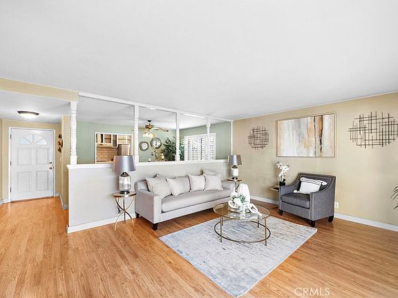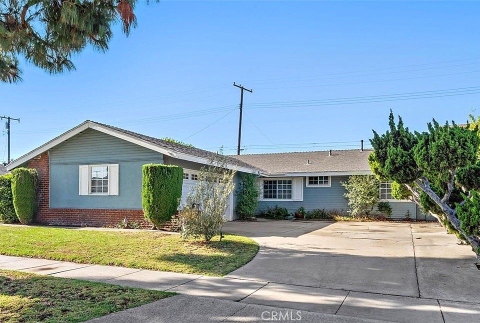 Unbelievable Opportunity Awaits! Bring your paint brush and transform this single-story Garden Park Plan 7 ranch-style home into your dream home. Featuring 4 bedrooms, 2 baths, and 1,486 square feet, it is ideally located in a premium, peaceful, and kid-friendly West Garden Grove neighborhood just steps from Edgar Park. This area is renowned for its distinguished, award-winning schools: Barker Elementary (9/10), Bell Intermediate (10/10), and Pacifica High (8/10) — plus the GATE program for gifted students, excellent sports, and performing arts programs, all within a one-mile radius. Close to shopping, restaurants, golf, beaches, and convenient to the 22 & 405 freeways. This outstanding home offers many upgrades to kickstart your remodel, including central A/C, dual-pane French-style windows, plantation shutters, custom 2-inch blinds, raised panel interior doors, mirrored closet doors, and ceiling fans in nearly every room. Lovely curb appeal with brick siding, composition roof, manicured lawn and landscaping, and a sweeping driveway to a two-car garage with roll-up door. Inside, you’ll find wood laminate flooring, a spacious living room with stone fireplace, full-size formal dining room, and a kitchen with tile countertops and backsplash plus a sunlit breakfast nook. The primary suite offers an ensuite bathroom with tile countertop and walk-in shower, while the guest bath features a tiled tub/shower combo. Sliding glass doors open to the backyard with a large lawn, concrete patio, and gardens — the perfect canvas to create your ideal outdoor space.