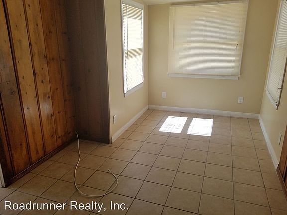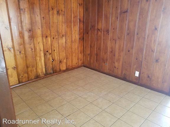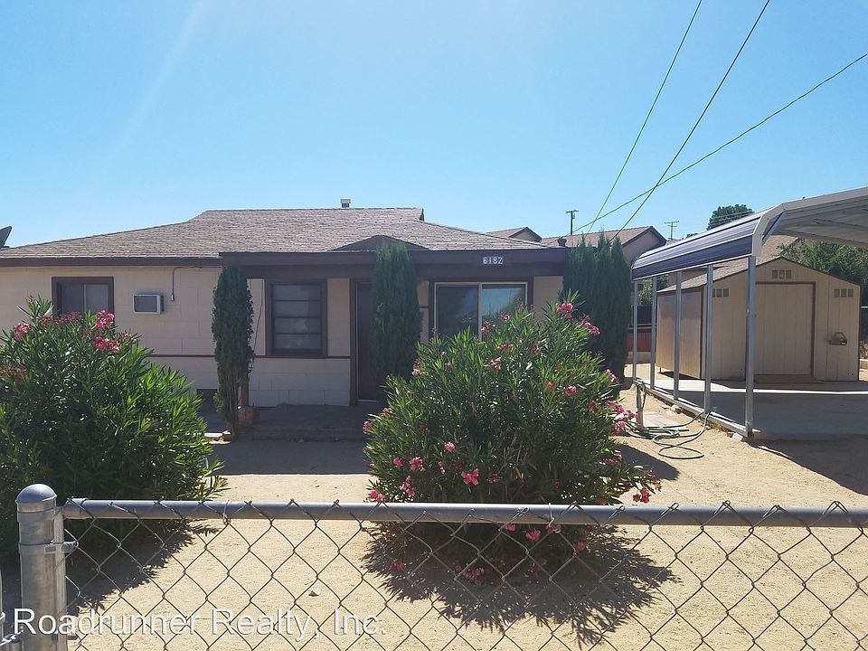 Cabin like feel - 2 bedroom 1 bath home with covered parking, storage shed and fenced yard. Nice front patio to watch the sunrise. All tile floors, wall a/c unit and fridge included. Living room walls are done in a knotty pine for a very cozy feel. Pets considered with additional deposit. Contact us today for a private showing. 760-228-RENT. $35 application fee. Offered by Roadrunner Realty. Lic.# 01517134 (RLNE3370689)
