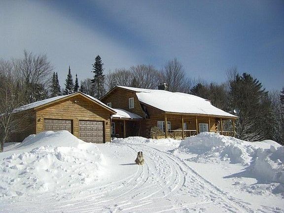 Horse heaven high in the hills ... stand on the wide front porch and gaze out at Groton State Forest and its nine mountain peaks. See the sun rise and set from this 37 acres of woods and pastures (all bound by high tensile New Zealand fencing). Enjoy complete privacy and quiet yet 2.5 miles from Rt. 2 and 2.25 miles from Rt. 14. Completely restored and reconditioned log home with new standing seam roof. Radiant heat on the ground floor, new Buderus boiler, Quadra-Fire stove insert and Hearthstone soapstone woodstove. Cathedral ceilings in the three bedrooms. 60x60 state of the art horse barn with rubber mats in aisle and seven stalls, heated tack room with bath, wash stall with hot and cold water, 2400 bale storage in hayloft, run in sheds with heated water and trailer storage. The barn has its own septic, manure pit and sits next to a 60x120 indoor arena with PA system and an 80x150 outdoor arena with mountain view. Road frontage on two roads totaling .5 mile