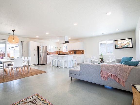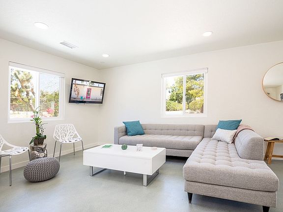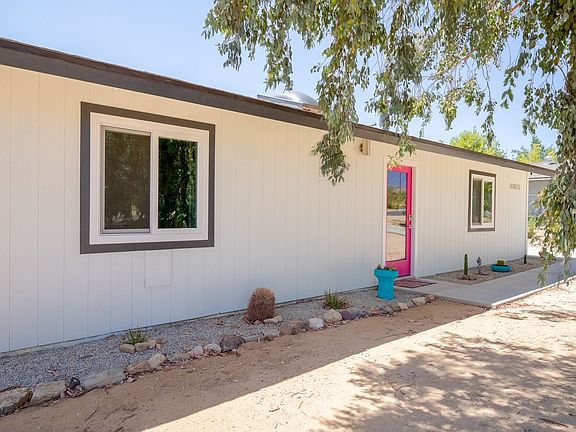 Welcome to 61823 Oleander Dr. in Joshua Tree! This recently remodeled home boasts two bedrooms, one bathroom, and a one and a half car garage. With a new roof, skylight windows, and all-new Milgard windows, this residence offers both charm and functionality. Step inside to discover fresh exterior and interior paint, complemented by sleek white cabinetry and stainless steel appliances in the kitchen. Convenient laundry hook-ups are located in the garage. Enjoy outdoor living on the covered patio, while inside, revel in the modern touches such as stained concrete floors and energy-efficient LED lighting throughout. The bathroom features contemporary subway tiles and a skylight, adding a touch of elegance. The primary bedroom comfortably accommodates a king-size bed and includes a ceiling fan and dual closets. Meanwhile, the second bedroom fits a queen-size bed and features a ceiling fan and mirrored closet doors. The new HVAC system ensures year-round comfort in the main house. Outside, you'll find a one and a half to two-car covered garage with an additional half bath and a small office space. The enclosed backyard offers privacy with a sturdy fence, perfect for relaxation or entertaining guests. Don't miss the opportunity to make this delightful property your new home! *Home is shown with furniture, but will be rented with no furniture.