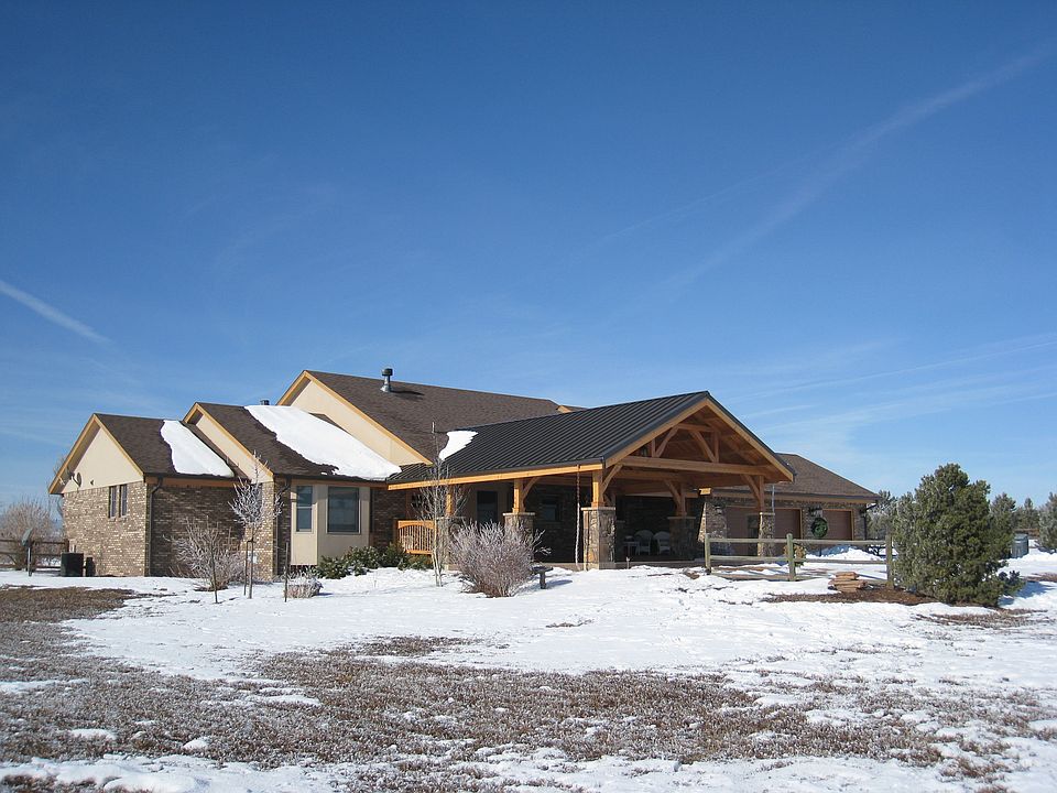Very private property with beautiful trees bordering. Drive up to an amazing Colorado style porch with stone pillars. Seven miles of open space trails that are private. Ranch style home with finished basement. Great schools and convenient to shopping, restaurants and a level one trauma center. Easy access to I-25.