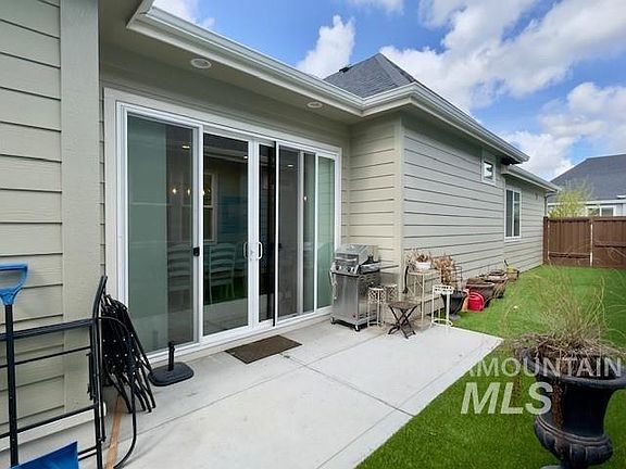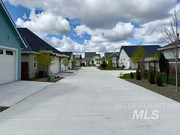Welcome to Cadence, a gated 55+ community! This classy single story home is located very near the clubhouse, pool, bocce ball courts, and pickleball courts! Incredible location! Built by Brighton Homes, one of Idaho's premier builders, this immaculate open concept home is move-in ready and perfect for entertaining. The home features engineered hardwood, quartz counters, and tile floors in the bathrooms. Don't miss the built-in wine cabinet! The kitchen includes all Bosch appliances. The master bath features a separate tub and shower with grab bars installed in the shower and by the toilet. The den has beautiful built-in desks and work stations with lots of storage. The side yard is fully fenced and has been upgraded to include artificial turf for extremely low maintenance. Live your best life and leave the snow plowing to someone else. All exterior landscaping maintenance and snow removal (2+ inches) are provided by the HOA.