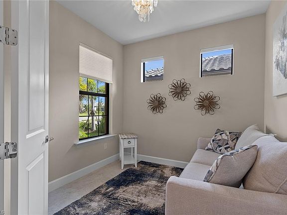 Why wait for construction?! This home is like NEW! This FURNISHED home with numerous upgrades in the 55+ Del Webb community. This Contour floor plan is located in Ave Maria, a beautiful master planned community. This gorgeous home has a beautiful water view with two bedrooms +den (has sleep sofa) and 2 bathrooms. The hurricane impact windows, doors, and sliders provide both security & energy efficiency. This home has the SOCIAL membership; however, golf memberships are still available for purchase. The Del Webb resort style amenities include a resort style pool, lap pool, fitness center, pickleball/bocce, tennis and so much more! You will love riding around Del Webb and Ave Maria in your golf cart to Publix, church or out to dinner.