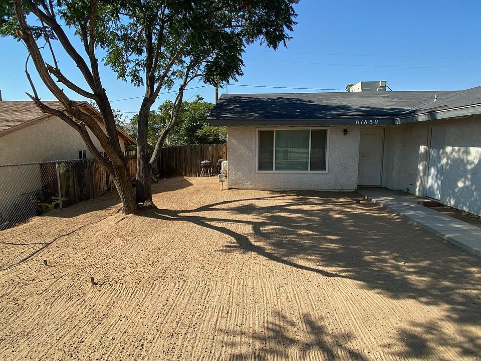 Cozy 2 bedroom, 1 bathroom home less than 2 miles from Joshua Tree Elementary School. large fenced in front and backyard Mini Split AC/heat and swamp cooler Tile throughout Washer and dryer hookups in garage. Owner will pay for water and trash. Electricity, Gas and landscaping will be tenants responsibility. Separate pet deposit will apply No smoking inside the house. 1 year lease term