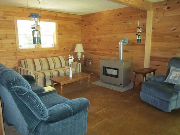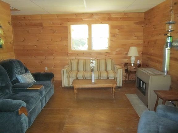 Currently a seasonal "get-a-way" but built for all seasons with 2x6 construction, full-block foundation, septic, water well, heat & wired for generator (no electric at property). 900 SQ Ft with 2nd fl sleeping quarters. Kitchen/living combo, dining room with access to back covered porch & bathroom. Stream, woods, 4 tree stands, yard & privacy! Trusses have vent system, whole house insulated, Alarm system, TV Antenna, phone line & internet available. FURNISHED. Seasonal access unless it becomes a full-time residence (per seller). VERY WELL-BUILT! All mineral rights convey. PRICE FIRM.