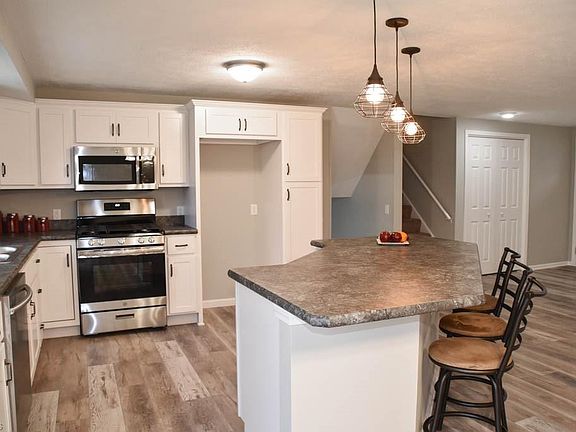 Call or text Listing Agent Jose Medina at 330-605-9185 for a private showing. Beautifully remodeled 3 bedroom, 2 full bath home with an open floor plan! Great entertainment space on the main level. The kitchen is completely new with lovely white cabinets, a pantry, new countertops, stainless steel appliances, a center island with rustic pendant lighting and a breakfast bar. The dining room has a sliding door to the back deck. Upstairs, there are 3 bedrooms and a full bath. The master bedroom has direct access to the remodeled full bath with tile flooring and dual vanities. Brand new flooring and fresh paint throughout! The lower level features a finished family room with a gorgeous brick fireplace. Around the corner, a second full bath offers a tiled walk-in shower. The utility room is super clean and has walk-out access to the 2-car rear load garage with above storage and a new door opener. Enjoy those long summer days from the large deck overlooking your backyard with a storage shed. Updates include brand new windows and roof in 2019, new bathrooms, kitchen, lights, deck floor, electric box/panel plus new front vinyl siding! Move-in ready home! Schedule a private showing today!