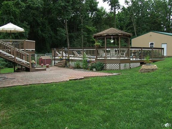 Spacious Split Level Home on an Acre of Property featuring 4 Bedrooms, 1,400 Sq Ft of Living Space & 3 Car Detached Pole Barn with Office/Workshop. Open Floorplan in Living Room w/Vaulted Ceilings & Eat-In Kitchen w/Sliders to Back Deck. The Back Deck Overlooks the Patio Area & Large Above Ground Pool w/Decking & Gazebo Areas. Large Master Bedroom w/Walk In Closet & Finished Lower Level w/Family Room, Pellet Stove & Sliders to the 2nd Partio Area. Newer Roof, Oil Heat, 2 Car Attached Garage & Close to NJ!