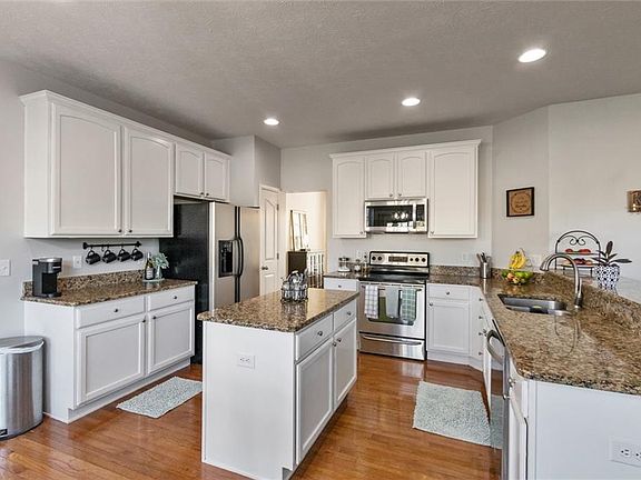 Beautifully appointed & wonderfully maintained 4BR/3.5BA home in desirable Mill Grove loaded w/updates. Upon entering, you'll find a 2-story foyer w/beautiful hardwoods on main level leading intoGreat Rm w/woodburning FP which opens to KIT& Breakfast Rm making it ideal for entertaining. Spacious KIT feat island, breakfast bar, granite countertops, stnlss stl appl & pantry. Mstr Suite feat cathedral ceiling, W/I closet, 2 sinks, separate shower & tub. Full fin bsmt w/rec area, Flex Rm, & Full BA! Other feat incl office on main, dining rm, & wainscot plus 3 cargar. Great outdoor living on large deck & extendedpatio overlooking spacious yard & common area with no neighbor to the east as well as nearby walking path! Roof: 1 yr, HVAC: 3 mo.