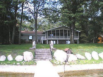 Warm, Inviting, Lakefront Home Quality Cedar & Brick custom bi-level home on desired West Shore. Three spacious bedrooms, two baths, first floor laundry & master bedroom. Open floor plan with wood burning stove and full glass door wall providing an unobstructed view of the lake from the living & dining area entering onto a spacious 10 x 34 screened in sun porch. Large comfort kitchen. There is an abundance of storage. Very tastefully decorated with wallpaper, ceramic tile and a warm inviting feel. Attached 3-car garage with changing room. Heated 11.5 x 30 workshop. Sprinkler system, intercom and wired stereo system. 7 x 13 Cellar room. Blacktop driveway, 12 x 25 lean-to, perfect for boat storage.