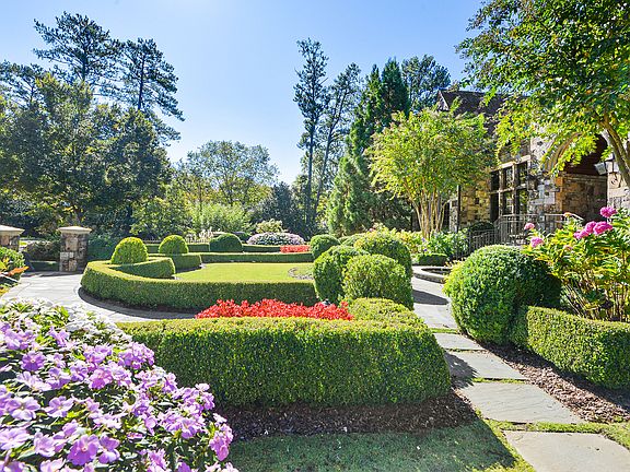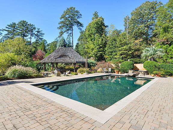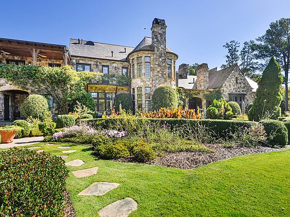 Spectacular gated estate beautifully perched on 4.2 perfectly flat acres in the heart of Sandy Springs. The picturesque grounds feature formal and informal gardens, Koi ponds, pool, pool pavilion, lighted tennis court, and one of the largest lawns you will find in Atlanta. Four-sides stone manor offering an abundance of living & entertaining spaces.The main level offers an oversized kitchen with double islands, grand fireside keeping room, formal living room, formal dining room, library, study, and oversized master-on-main featuring a sitting room, large closets, and spa bathroom. Upstairs consists of four ensuite bedrooms, including a secondary master suite with adjoining sitting room, and a bonus room. Full finished basement offers a gym, recreation room, billiards room, temperature-controlled wine cellar, and kitchenette. The guest house features an additional bedroom suite, living room, and powder room. Additional features include a six-car garage, his/her pool bathrooms, slate roof, completely gated/fenced estate offering complete privacy and security.