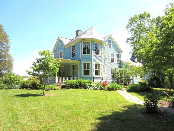 This storybook beauty has it all, and they really don't make them like this anymore. Step into yesterday, with modern amenities. Breathtaking is an understatement. 4 great sized bedrooms, 2 full baths, formal dining, and grand living room. Designer choices everywhere. Each floor has its own master, and plenty of closet space here. Real country kitchen with everything you need, including local soapstone countertops and a working wood stove. Heart pine floors throughout, in magnificent condition. Curved walls, high ceilings, leaded glass windows, claw foot tub, good closets and attic for storage, and, most of all, space and privacy to breathe and relax in nature. Several outbuildings. Country porches. Landscaper's dream. See photos!