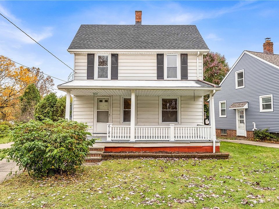 This beautiful single-family colonial home has so much to offer! You are welcomed by a large covered front porch that overlooks the front yard! Walk into the living room featuring beautiful hardwood floors and large picture windows allowing for tons of natural light! Continue into the spacious kitchen! The kitchen offers plenty of counterspace, a stainless-steel double sink and beautiful white cabinets! With large windows, there is tons of natural light flowing through! Upstairs you will find 4 bedrooms with plush carpeting and gorgeous wooden doors! There is a full bathroom upstairs as well with a tub/shower combination! Continue down to the basement which offers a laundry area, tons of space for storage and a convenient full bathroom with standing shower! Outside you will find a detached 2-car garage! This home is near food, shopping and public amenities! This won't last long! Schedule a showing to see it for yourself!