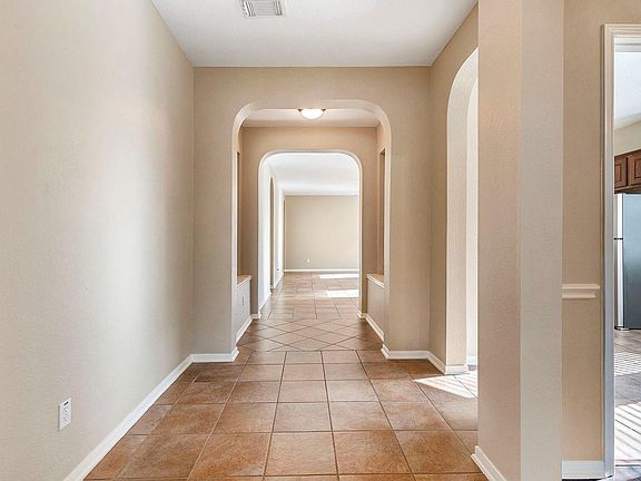 Large windowsGranite countertopsTile backsplashWalking pathsArchitectural archesRich wood cabinets