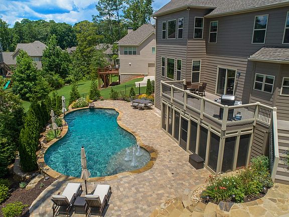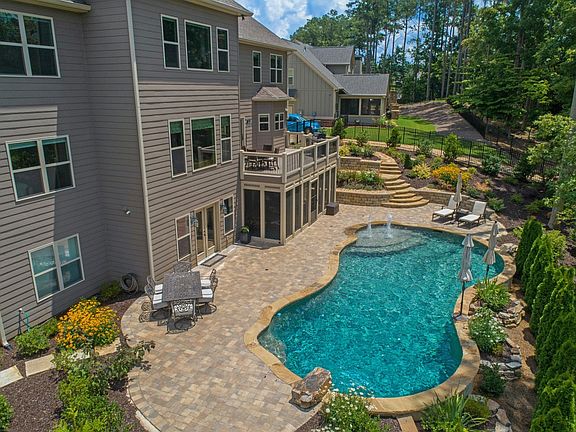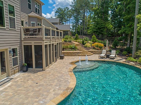 Please no realtor solicitations. This beautifully appointed home is designed with custom features creating an exclusive home like no other. Step through the double wrought iron doors into the 2 story foyer flanked by a dining room and custom designed office with built in bookshelves and a travertine stacked tile wall. The family room with its coffered ceiling and built in shelves opens to the bright and spacious breakfast area and kitchen fully equipped with granite, soft close cabinetry and stainless appliances. A bedroom and full bath complete the main level. The dual staircase leads to 3 bedrooms, 2 baths and the owner?s suite with sitting area and spa bathroom. A crafter?s dream comes true with the custom designed craft room on the second level. The terrace level includes an entertainment room with bar, bedroom, 1 ? baths, exercise room with a Freemotion EXT dual cable cross and a flex room. Relax on the screened in patio or take a dip in the UV filtered heated pool surrounded by a beautifully landscaped yard. Too many features to note. This is a must see!