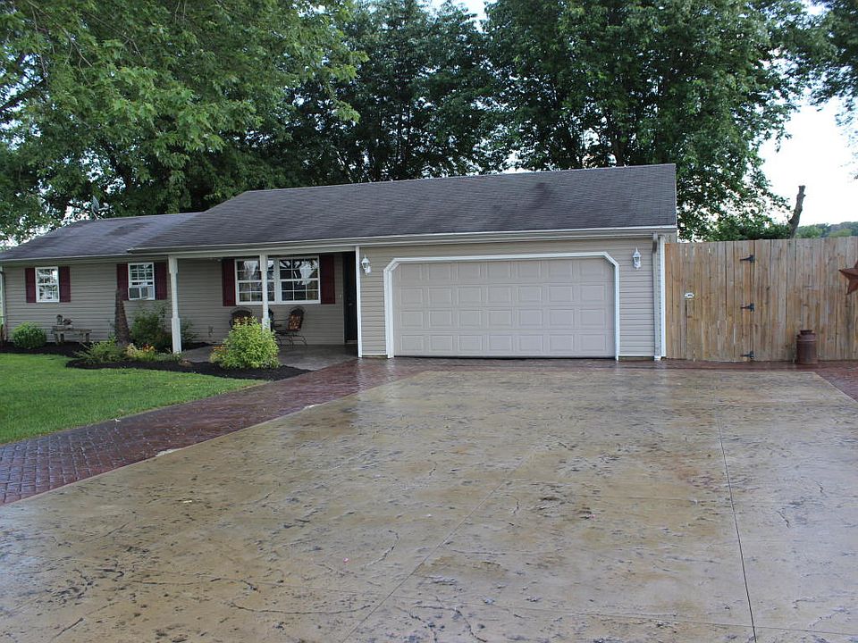 Listing agent is also the home owner. When pulling up to the property you'll notice an extremely large decorative concrete driveway, newer siding, & windows. The backyard is completely enclosed w/an 8ft privacy fence. Behind house there's a decorative concrete wrap around porch for entertaining. Plus two other patios out back. Play set stays w/home. Owners replaced well pump in 2010. Home also has new aerator set to a timer & water heater in 2015. The two car garage has been finished and painted. Inside the house features laminate floors throughout living room & bedrooms. There are new interior doors, light fixtures, & switches. House has an open concept kitchen, dining, & family room w/ceramic tile flrs. Kitchen cupboards have been refaced to give a more update appearance.
