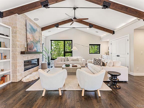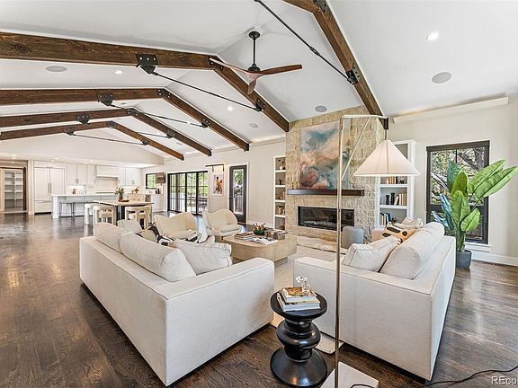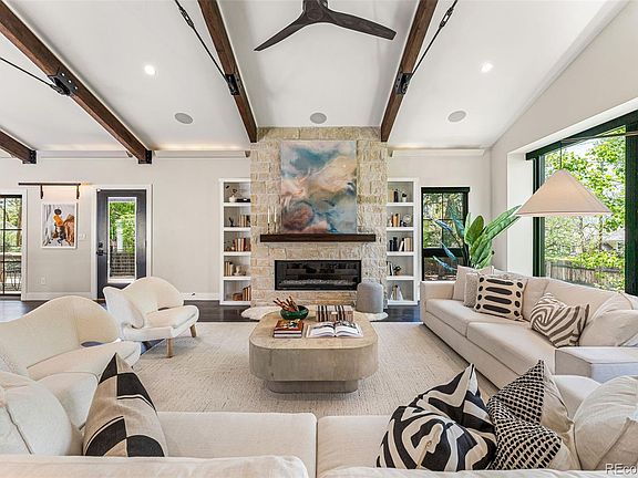 This stunning home in coveted Greenwood Village offers a perfect blend of newer construction and luxurious detail. Completed in 2018 and situated on a corner lot facing the High-Line Canal, it spans over 4,684 square feet of modern elegance. Strategically placed windows and sliding doors seamlessly connect indoor and outdoor living from the private entry courtyard to the south-facing deck and maturely landscaped backyard. Framed by vaulted ceilings, the open main level effortlessly flows from living to dining with a bright, spacious dining area and breathtaking white-on-white designer kitchen featuring high-end appliances and ample storage. The main level also boasts a utility room, drop zone, custom mudroom, large walk-in pantry, and an additional bedroom with en-suite and serene office space, both with outdoor access. Ascend the elegant ebony oak stairs to discover an expansive owner's retreat designed for ultimate relaxation with a spa-like bath and walk-in closet featuring private access to the laundry room. Two more bedrooms, each with an en-suite, complete the upper level. The lower level boasts a spacious guest suite with oversized egress windows, a full bath, and a walk-in closet, offering comfort and privacy for visitors or extended family. Ideally located just a block from the prestigious Aspen Academy and Cherry Hills Marketplace, with easy access to the Streets at Southglenn shopping district, enjoy the area's best amenities from this Greenwood Village home.