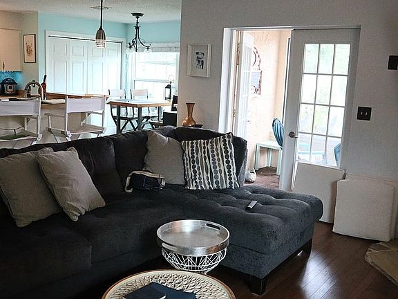 This is a beautiful 2 Bedroom, 2 Bath town home with a 2 car garage in desirable Port Orange area, waterfront community Riverwood Plantation! House is move in ready condition with beautiful wood laminate flooring, a master shower with large tile and glass shower doors. The open floor plan allows you to enjoy wood burning fireplace from the living room as well as the kitchen and dining areas. There is a breakfast bar, kitchen nook and formal dining room. There is a small private atrium of both bedrooms as well as a screened porch overlooking the back yard with french doors from the living room. House has spacious attic, which can be turned into a room. The lawn is maintained and the exterior of the home is painted every 4-5 years. Renovations include washer and dryer, and newly installed windows. The community has a dock, a boat ramp to Spruce Creek, pool, basketball and tennis courts, playground and clubhouse. It's the perfect new home for YOU! Can be sold fully furnished.