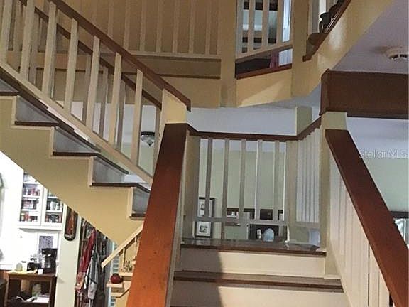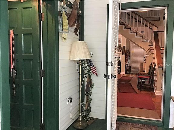 This custom, crafted, 3 bedroom, 2 1/2 bath home is situated on 25 acres. Over five acres are designated uplands with 19 acres located away from and behind the house being an ideal habitat for deer, turkeys and other wildlife with a seasonal grass pond - a great opportunity for viewing wildlife or hunting. Haw Creek flows through the eastern portion of the property. Planted vegetation attracts butterflies and various birds for nature lovers. Enjoy fruit from trees and plants grown in your yard which include bananas, guava and pineapples. As you can see from the pictures, this custom home has many built-in features with plenty of storage space. A beautiful custom designed staircase with built in storage drawers is the first custom feature you see as you enter the foyer through the closed-in front porch. To the right of the first floor foyer is a smaller bedroom which could be used as a den or office. A combination living room and dining room is also located to your right. Across from the dining room is the kitchen with eat-in space, cherry wood counter tops with glass front cabinets. The first floor has a full bath with double sink and tub/shower combination. An entry to the outside from the bath leads to a deck where you can sit and enjoy the outdoors. The first floor also has a large utility room with a half bath. Both the full bath and utility room have built in closets and a pantry. Across the full length of the back of the home is a glassed-in Florida Room with a wonderful view of a seasonal grass pond behind the home and where you can enjoy watching the wildlife. Located at the top of the beautiful custom staircase is a second bedroom with open loft. Both the loft bedroom and a third bedroom located on the second floor have built in storage drawers. The larger bedrooms are located on the second floor. Between the two bedrooms is a full size bath. Exterior features include a workshop with loft and an attached storage shed to the right. In the backyard is also a separate potting shed or shed for miscellaneous use and an outhouse. The property is partially fenced. After you finish gardening or working outdoors, there is an outdoor shower to make clean up a little easier. The property is located just 11 miles north of Deland, 3 miles from Lake Diaz, 13 miles from I-95 in Ormond, 14 miles to the St. Johns River and .6 miles south of Hwy 40. It's only a short 19 mile drive to the beaches in the Ormond Beach area. Termite bond is included.
