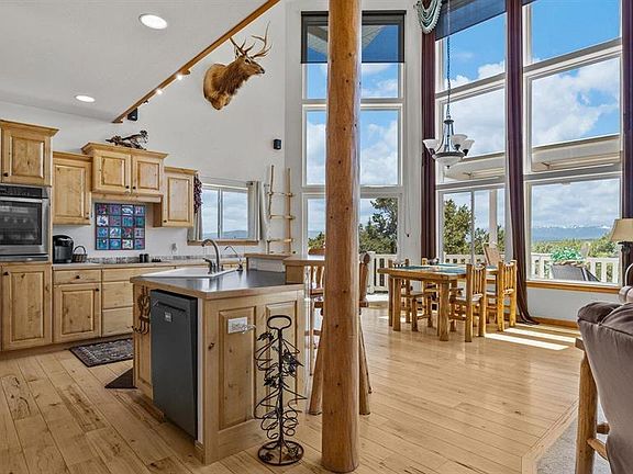 Mountain Luxury Meets Country Freedom – 35 Private Acres with Jaw-Dropping Views and priced $65,000 BELOW Appraised Value — Instant Equity! Welcome to your dream mountain retreat—perched above it all, with forever views of the San Juan Mountains, Cimarrons, and Grand Mesa. Just 20 minutes from Montrose, this custom-built home blends rustic Colorado craftsmanship with modern comfort and year-round accessibility. Set on 35 private acres, this property features hand-hewn log railings, rich hickory hardwood floors, knotty alder cabinetry, and pine doors that radiate warmth and authenticity. Step inside the great room and prepare to be captivated. Towering three-story windows frame breathtaking mountain views while flooding the home with natural light. Remote-controlled blinds and a gas-start wood-burning fireplace set the perfect mood for cozy evenings. The open-concept layout flows effortlessly from the living and dining areas to the kitchen, designed for both beauty and function with extended countertops, newer appliances, and abundant cabinet space. Bedrooms & Loft: Enjoy main-level living with a spacious guest bedroom and a full bath featuring a soaking tub, separate shower, and double sinks. Upstairs, the primary suite is a private haven with a large closet, ¾ bath with laundry chute, and a private deck to soak in the stunning views. A versatile loft completes the upper level—ideal as a third sleeping area, office, studio, or flex space. This loft is included in the bedroom count but does not currently have a built-in closet. With the home priced $65,000 below appraisal, buyers can easily add a closet or partial wall to create a fully conforming third bedroom. Outdoor Living: The property is designed for low-maintenance enjoyment, featuring boulder landscaping, artificial turf, a cozy fire pit, and trails that meander through your acreage—perfect for hiking, riding, or simply taking in the peace and wildlife. Adventure awaits nearby with easy access to BLM and National Forest lands for ATVing, horseback riding, snowmobiling, and more. Additional Highlights include, New roof (2024), New west-facing windows, Updated carpet, 6" insulated walls for quiet comfort, Radon mitigation system, Water softener & central vacuum, Attached garage with workshop area, 24’ x 36’ detached shop for tools, toys, or RV storage. By day—panoramic mountain majesty. By night—a blanket of stars. This is private mountain living at its finest, offering peace, privacy, and true Colorado beauty—all within easy reach of Montrose amenities.