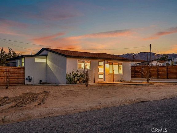 This one is really a must see with a great price! This newly renovated 2-bedroom, 1-bathroom home blends modern upgrades with desert charm, this one is five minutes from the Park Entrance, one minute from downtown, ten minutes away from 29 Palms, and the vast desert area gives this property a surreal feeling. The property has been a successful STR for years, and the upgrades that you see have been completed over the last two years. The privacy fence around the property gives a secluded feeling while enjoying the night sky and spa in the backyard! The open-concept living area is filled with natural light, while the updated kitchen features quartz countertops and new appliances. Both bedrooms are spacious with large windows, and the remodeled bathroom boasts contemporary finishes. On the street that the property cities is a perfect position to get great views of the whole landscape and still have the closeness of city life! Come check this one out!