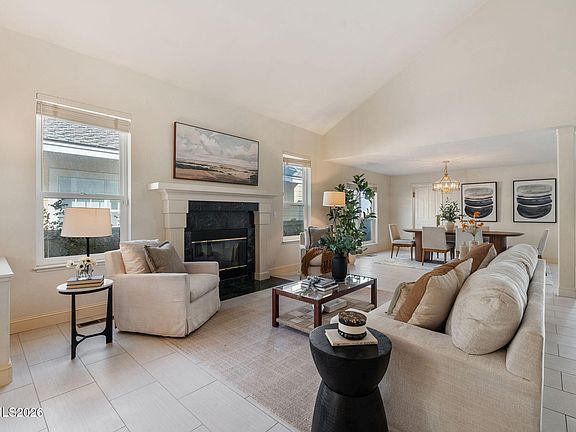 Centrally located Carriage House property in a gated Southwest Reno community offering refined finishes and breathtaking views. Enjoy panoramic city lights, mountain, and golf course vistas day and night. The refreshed kitchen features new quartz countertops, painted cabinetry, and upgraded hardware. Main-level primary bedroom and a low-maintenance patio support a true lock-and-leave lifestyle—completely turnkey and move-in ready.