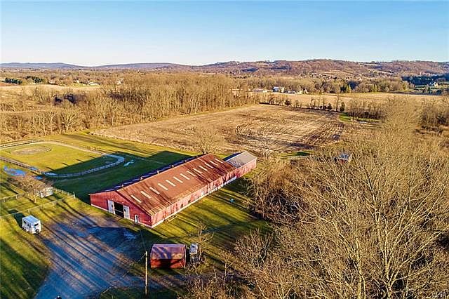 The stunning J & L Farms is now available in Upper Saucon Twp. This 18.88 acre farm of preserved land in the heart of Center Valley features a 20,000 square foot barn currently fully run to board & train horses. The land is approved for 1 add'l building w/ a number of special variances considered (ex: Landscaping, Tree Nursery, Poultry, Livestock). Main barn features 5,500 sq ft arena, 25 10x10 stalls (19 fully matted), dual hay lofts extending the length of the barn, a 300 sq ft Tack Room, bathroom, running hot water w/ well & septic on site & a comfortable office featuring baseboard heat & viewing window to the arena. The property is tree lined w/ open flat farmland and incl. 1 fenced-in pasture, shed & riding ring. Property has been in Act 319 since 2015, allowing the taxes to remain at $1,200/ yr. Potential income of boarding & training $20,000/ mo. The farm & house w/ add'l 1.1 acres are on 2 separate tax parcels & listed FOR SALE on MLS #625087, address is 6186 Vera Cruz Rd.