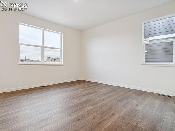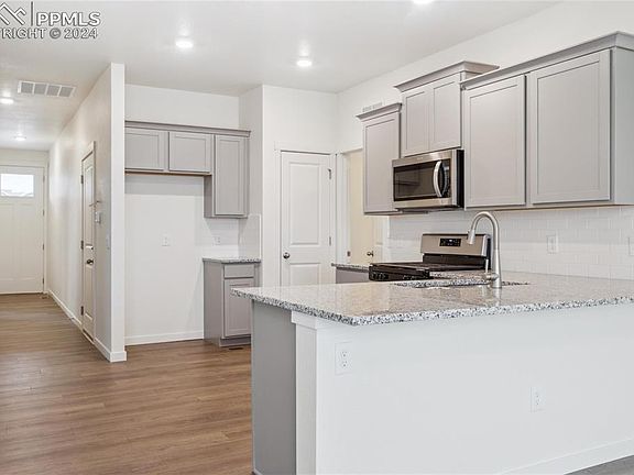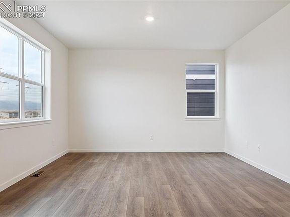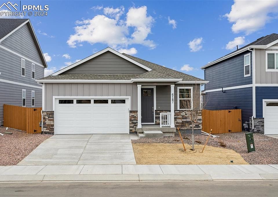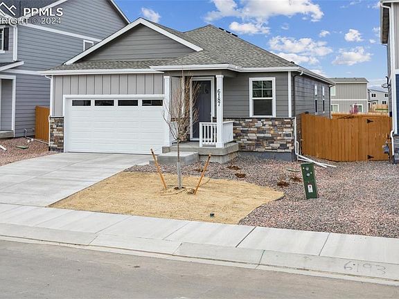 Welcome to this inviting 3 bedroom, 2 bath ranch style home where comfort and convenience meet timeless design. This open concept layout seamlessly connects the great room, dining area, and kitchen, creating the perfect setting for both everyday living and entertaining. Step into the large finished backyard with privacy fencing and enjoy the majestic views of Pikes Peak. The primary bedroom features a large walk in closet and a private bath complete with a double vanity, a relaxing shower, and elegant finishes that add a touch of luxury. On the opposite side of the home, you’ll find two additional bedrooms, perfect for other household members, guests, or even a home office. With included AC, tankless water heater, hard surface floors, smart home package, and much more, this home offers a perfect blend of style, function, and comfort. Welcome Home!