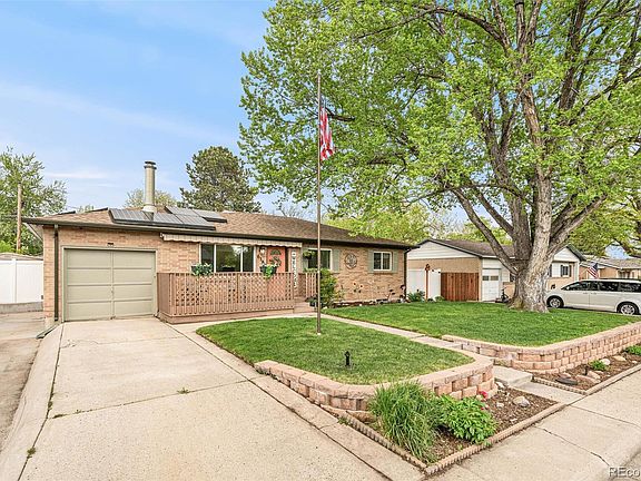 Welcome to the Wonderful World of Hutchinson Homes! Nestled in the sought-after Arvada West neighborhood, this charming Mid-Century Hutchinson home awaits your personal touch. Built by renowned home builder Ted Hutchinson, this brick ranch showcases timeless Mid-Century Modest architecture and is poised for your stunning transformation! Upon entering, you're greeted by the great room, and down the hallway, you'll find the expansive primary bedroom, an ensuite bathroom, and space for a home office. The main level has original oak wood floors and allows the opportunity to add a third bedroom, providing flexibility to suit your lifestyle. The full basement offers a gathering space with a family room, two bedrooms, a 3/4 bathroom, a laundry/utility room, and extra storage. The kitchen features quartz countertops, stainless steel appliances, a gas-stove, and French Doors leading to a covered deck with a natural gas grill, blending indoor-outdoor living. The exterior offers a freshly painted, curated color palette and a front porch with an electric SunSetter awning. There is plenty of parking with the attached one-car garage and extra off-street parking for a mini Airstream. The backyard is a private oasis, boasting a lush lawn, a tranquil koi pond, a wood fire pit, and a 10X10 gazebo, perfect for relaxation and entertaining. And two sheds for your landscape tools. Worry-free living is ensured with a newer furnace, newer A/C, newer water heater, and solar panels that are free and clear! Enjoy proximity to Historic Old Towne Arvada and Memorial Park, offering Johnny Roberts Disc Golf and top-rated schools. Nearby, new commercial developments provide convenient access to shopping, dining, and charming coffee shops. Commute effortlessly to downtown Denver via the light rail or embark on a mountain getaway via I-70, making this home an ideal retreat for city and outdoor enthusiasts. Don't miss the opportunity to make this gem yours and bring your modernist vision to life!