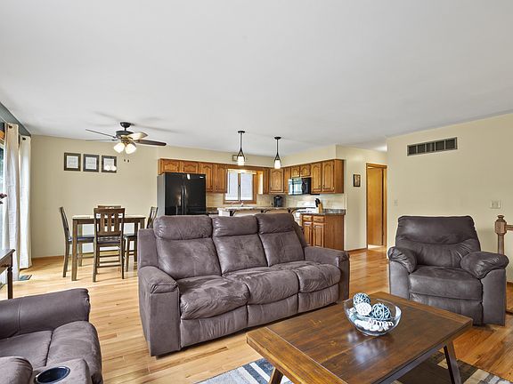Beautiful well taken care of home located in the Town of Lyons (bordering Lake Geneva & Burlington). Open floor plan, lots of natural light, updated & inviting, wood floor, fresh paint, new carpeting in bedrooms & lower level family room. Eat in kitchen features a snack bar island, open to the living room and has patio doors leading to the deck & backyard. Insulated garage includes workbench. Furnace & roof 2016.