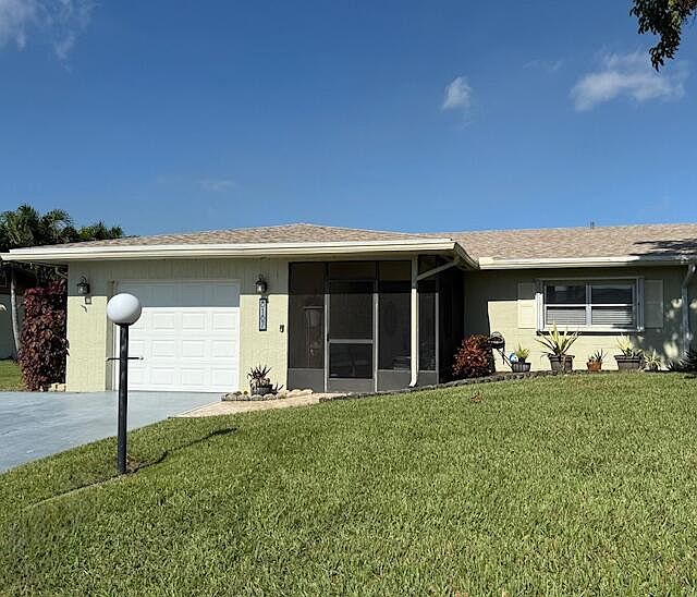 Are you tired of the cold and snow yet? Head SOUTH! Enjoy easy South Florida living in this charming villa in an active 55+ community in the heart of Delray Beach. This well-maintained home features a 2024 roof, updated bathroom vanities, no carpeting, and an open floorplan with great storage. The air-conditioned Florida room is ideal as a den or office. Enjoy peaceful mornings on the screened front patio. Accordion shutters add peace of mind. Low HOA includes cable, internet, lawn care, gym, pickleball, tennis, and clubhouse activities. A 1-car garage plus 2-car driveway offers convenient parking for you and your guests. Minutes to downtown, beaches, shopping, and dining. This is the perfect blend of comfort, convenience, and active adult living. Don't miss it! PROFESSIONAL PHOTOS SOON!