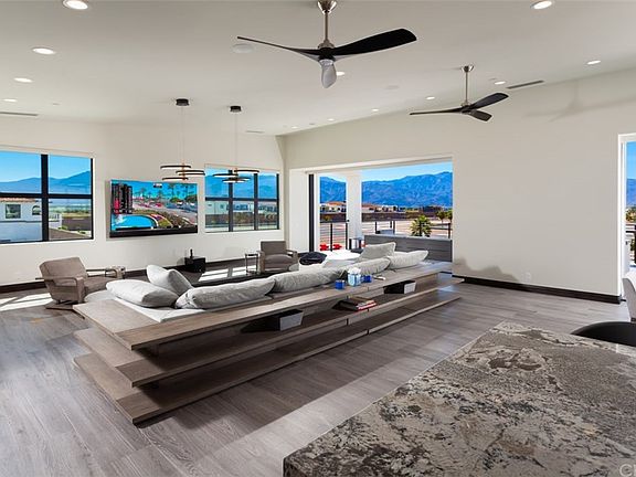 As featured in The Wall Street Journal, take a look inside one of the most exclusive racing resort clubs in the world. As one of the first completed villas to ever be publicly offered, this nearly new, fully furnished luxury retreat is situated on a prime, picturesque site on track with 360° views that capture both track, mountains, and sunset. The open concept great room has an abundance of indoor / outdoor space that is expertly equipped for entertaining on a large scale or simply a cozy dinner for a few. This custom designed villa is complete with Savant home AV system, Ipad/phone controls, whole house speaker system, cameras, front door call system, elevator, electric shades throughout and TVs in every bedroom- not to mention a 16 car (2500 sf) garage with vaulted ceilings and walls of glass for viewing your prized vehicle collection from within the home, including 50' of C Tech cabinets and Ingersoll Rand air compressor. Amenities include a clubhouse, restaurant, two putting greens, a tuning shop and four-story eagle's nest that overlooks the development, full service spa and athletic club, tennis court, pickleball court, 2 pools with a lazy river, kart track, and 3 racing circuits designed by world renowned racetrack designer Alan Wilson. In addition, residential staff can prepare a villa before a members arrival, stocking the kitchen and attending to their every need.