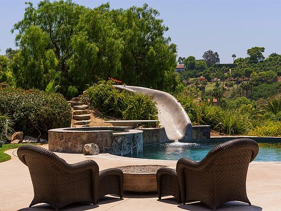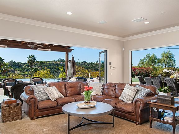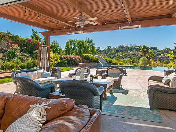 Luxurious 6500+ sq ft captivating 5 beds 7 baths + office & GYM. Remodeled with La Cantina doors for the ultimate indoor/outdoor flow. Private/fenced 1 acre lot w/ 180 degree sun-kissed south west facing views. Fantastic pool, spa & water slide, putting green, vineyard, vegetable gardens, outdoor tv's, built in BBQ, basketball, tons of parking, 5 car garage & owned-solar.Located in Las Villas,an enclave of only 10 homes adjacent to The Bridges golf course. Great Virtual Tour