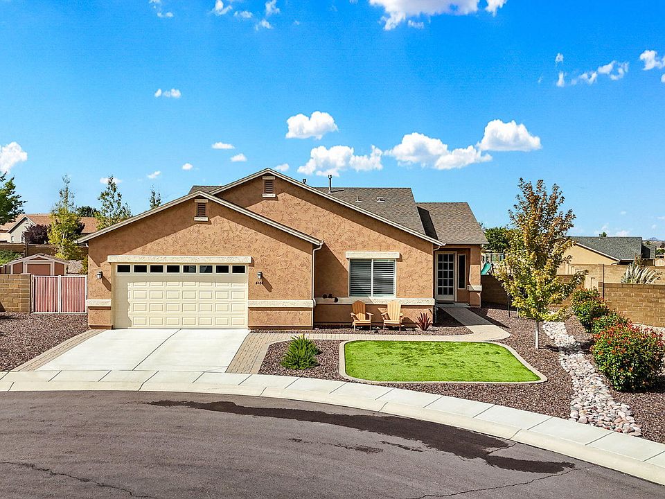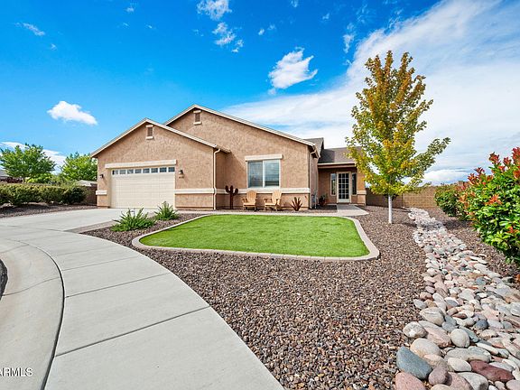 Tucked away on nearly ½ ac in quiet cul-de-sac, this single-lvl blends privacy & community. This immaculate home has 4 BRs (1 used as office), 2 BAs & open, contemp layout ideal for everyday living & entertaining. Chef's kit boasts granite, island w/shelving & seating 3-4, eat-in or formal dining, ENERGY STAR appl incl newer convection oven (plumbed gas). Split plan offers pvt primary retreat w/WI closet, while 3 add'l BRs provide flex for family, guests or office. Upgrades: paver walk, cov patio, artif turf, fully lscp'd front & back, RV prkg, shed, drip sys, 5 fruit trees, raised beds. Slider door leads to grassy play & swingset areas. Enjoy Mingus & SF Peak views! Granville amenities: clubhouses, pools, fitness, tennis/pickleball, trails & more. Close to shopping, dining & medical.