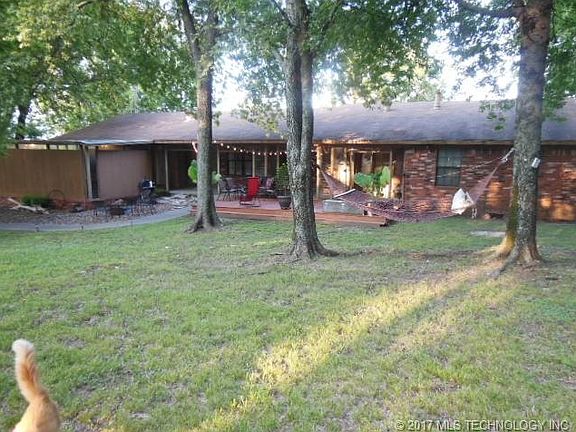 COUNTRY LIVING but close to town and turnpike on 5 acres. Ranch Style home with lg. yard nice size bdrms. Lg. Living area, kitchen and dining, game rm. Lg utility rm. Nice deck on back+covered porch. Close to the lake. Slab to park toys on.