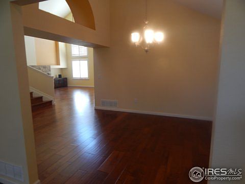 Do not miss this gorgeous 4 bedroom home in St Vrain Ranch! Spacious & open floor plan w/ vaulted ceilings, soft paint, & tons of light! Open eat-in kitchen complete w/ stainless steel appliances, a large island, & a pantry! Kitchen flows into the family room w/ an exposed stone fireplace, ideal space for family gatherings! Main floor king sized master suite w/ 5 piece bathroom! The upper level features 3 additional bedrooms & 2 full baths! Formal dining room. This home will not disappoint!