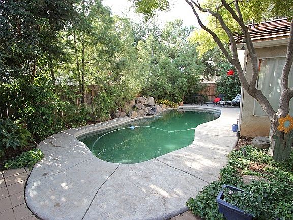 Traditional Sale! Absolutely gorgeous backyard with sparkling pool surrounded by stamped concrete & rock waterfall. Lovely low maintenance patio area is great for entertaining with lots of shade & beautiful adobe brick pavers. This home is located on a nice corner lot with great curb appeal. Nice wood floors in the living area & hallway. Living room has a spacious feel with vaulted ceiling & fireplace. The front office has french doors & opens to the living area as well. Kitchen features tile counters, built in appliances, work island & breakfast nook. Nice size bedrooms with plenty of storage. Master bedroom also has vaulted ceilings & a private entrance to the back patio. Master bath features soaking tub, dual sinks, stall shower & walk in closet. Indoor laundry & oversized 2 car garage with work area. This beautiful home will not last long! OPEN HOUSE THIS SUNDAY 1-4 (JULY 27)