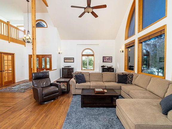 This gorgeous property is nestled on 1.13 acres of lush landscaping at the end of a quiet cul-de-sac, just minutes away from downtown Bend. With high ceilings, plenty of natural light, and beautiful hardwood floors, the entrance is bright and airy with an open living area and French doors leading to a fantastic office space with built-in cabinetry. The master bedroom on the main floor is adjacent to the back patio, overlooking the beautifully landscaped backyard and outdoor living space. The kitchen features an open dining area and breakfast bar with granite countertops, and a large pantry. The upstairs features two bedrooms with adjoining bathroom, and two bonus loft spaces overlooking the main floor. Downstairs boasts a spacious, finished basement perfect for an entertainment space - with a bar, kitchenette, full bath and bonus storage room. This amazing property features a 1600 sq ft garage and work shed, with plenty of built-in storage and RV parking.