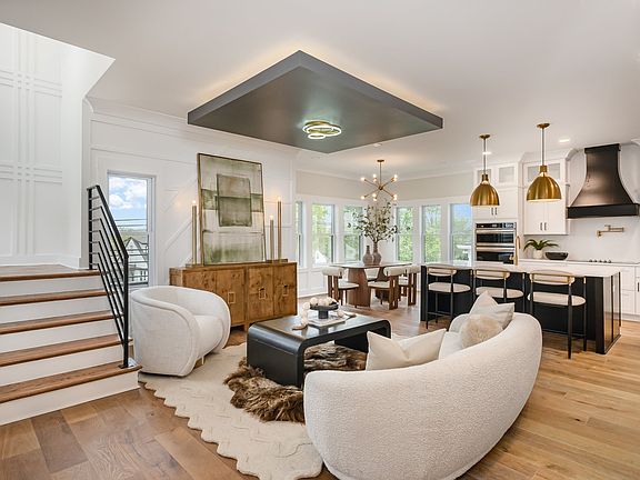 Step through stunning wood-trimmed double doors into a soaring, sunlit haven featuring dramatic ceilings, walls of windows, and custom woodworking throughout. The show-stopping white kitchen is a chef’s dream with sleek cabinetry, premium appliances, and an oversized island perfect for entertaining. Flow seamlessly into the window-wrapped breakfast nook and airy living room, where natural light floods every corner and invites gatherings of any size.