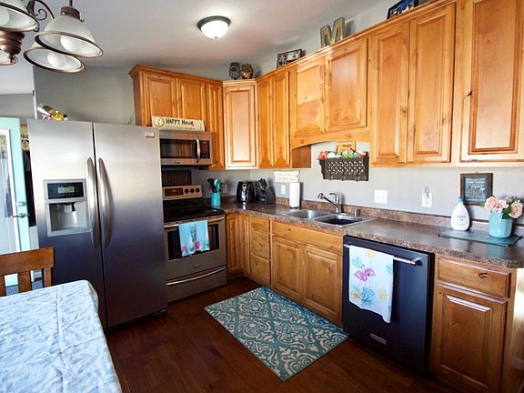 Parking galore and space for more! It is not often that you find a home on a corner lot in town with enough space for a boat, camper,trailer, vehicles and more. The home features a fantastic kitchen with gorgeous cabinetry with room for a large table to gather around.Off the kitchen you will find the inviting and bright living space with entry are and closet off the front door. There are 3 bedrooms on the main floor, the largest of which truly designating itself as the main floor master. Finishing out the main level is a full bathroom with a deep tub perfect after a long day on your feet. The lower level has been partially finished with a family room and an additional non-conformingMaster Suite. The closet is the size of dreams with enough space to showcase all of your clothing and a spacious 3/4 bathroom. This is more than enough to make this property the place you may want to make home, but some may say the greatest feature TRULY is the garage. Measuring 24x28 it is insulated, finished with chipboard, heated and even has its own powered exhaust venting. It easily becomes more than just a garage, but actually additional living space for the property to enjoy all year long.