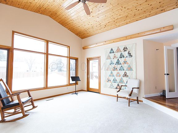 Highly desirable Fargo country club neighborhood. No back yard neighbors, just a big open playground. Large rambler with a 4 season sun room. Eat in kitchen and a formal dining room. Master bedroom has a recently tiled shower. 3 bedrooms and 2 baths on the main floor. Both a gas and wood fireplace will make it cozy all year round.
