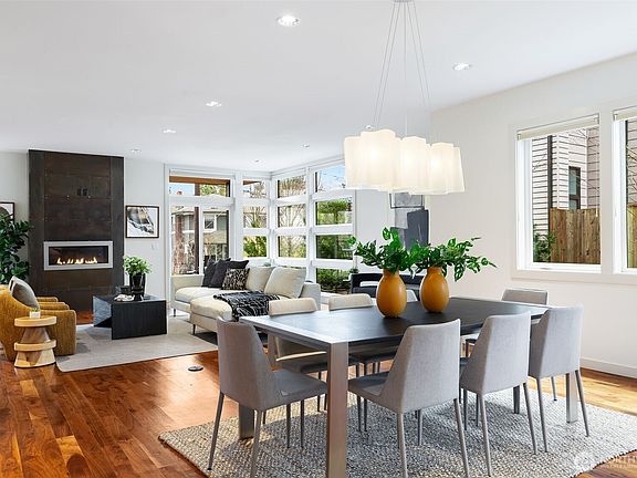 Enjoy sophisticated city living on this quiet Madrona street featuring a harmonious blend of elegance & comfort. Graciously designed w/soaring tall ceilings, an abundance of windows, intimate patios, sparkling hardwood floors & beautiful gardens. There's a seamless flow of open living spaces, a designer kitchen w/top of the line appliances, luxurious stone counters & sophisticated finishes throughout. Upstairs are three generous bedrooms, a stunning primary suite w/a wrap around deck; an open study & third floor family room w/a wet bar, balcony & adjacent work out room. The 2 car garage has EV charging & opens to a mudroom both w/tons of storage. Close to great restaurants, charming shops, parks, schools, Lk Wash & easy access to downtown.