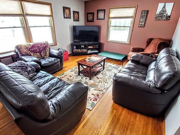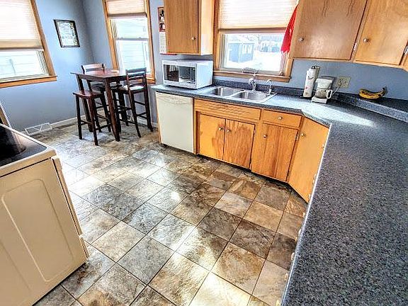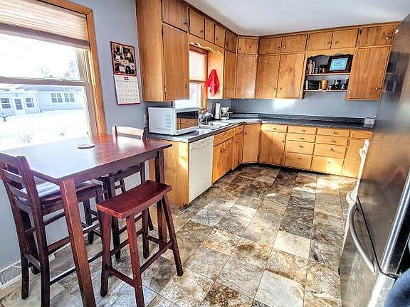 This cozy, ranch-style home has been modestly updated and is fully move-in ready. The exterior of this home features steel siding as well as a steel roof. There is a large oversized double attached garage (26x32) followed by a breezeway into the kitchen. Kitchen has incredible variated tile flooring which has also been carried into the main level bathroom floor and shower surround. Abundant cabinetry, dishwasher, lots of counter space for the avid cook, as well as a small space for a dining table and chairs. The living room is quite large and full of natural lighting. Down the hall, you will find three extra-large bedrooms- all of which have original wood flooring. Brand new high-efficiency furnace installed in 2019. All appliances will be included in the sale as well as the adjoining parcel #0517328008 with an outdoor shed! Let your tax return help you invest in your future.