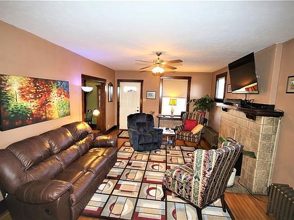 Welcome to 619 4th St! This STUNNING home has 3 spacious bedrooms with hard wood floors throughout. Large living room with fireplace. Charming dining room with gorgeous wood work and built-in. Enclosed sunroom in back overlooking back yard! Landing/sitting area at the bottom of the steps is a great place to relax! Bathroom is equipped with jetted tub! Spacious unfinished basement is great for storage! 2 level detached garage in back of home with alley access. 2 car garage with concrete driveway & 2 garage doors below with alley access! Seller will provide HSA home warranty at closing! Located minutes to Route 43!