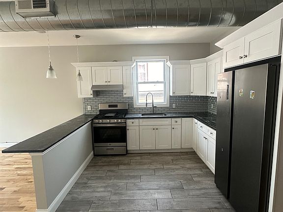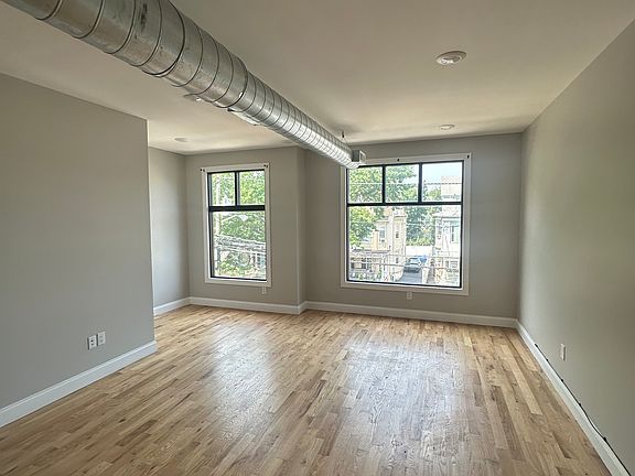 Freshly painted. Modern look with large front windows. Hardwood floors One month rent, one month security, one month rent ,one month realty fee laundry hookups, street parking