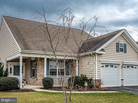Come home to convenient one floor living in this 55+community. Open floor plan with an abundance of natural light & spacious rooms. Dura-ceramic floors in the sunroom, kitchen, & foyer. Kitchen offers a breakfast bar & nook. Keep warm and cozy with the 2 sided gas fireplace in Great Room & living room. 3 bedrooms, 2 baths, & walk up storage room over the 2 car garage. 1 yr home warranty included.