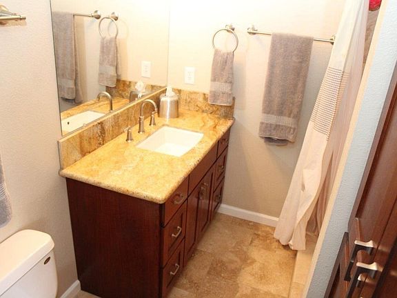 This Adorable home has been remodeled from top to bottom with no expense spared, The kitchen features high end cabinets with soft close drawers and doors, granite countertops, under lighting, toe kick floor registers custom backsplash remodeled for maximum storage and space, stunning versa-pattern honed and filled travertine flooring throughout the living space, new custom bathrooms and new paint, new carpet, new windows throughout, new ducting in attic and under the home .